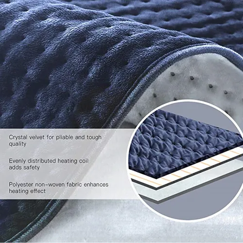 Nossa almofada de aquecimento de flanela/veludo, com aquecimento avançado de fibra de carbono para distribuição de calor suave e uniforme. O controlador inteligente oferece 6 configurações precisas com uma exibição clara e opções de temporizador flexível (1-9H ou 2-12H desligamento automático).