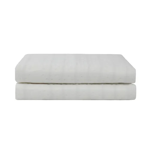 Poliéster branco e poliéster azul oferecendo conforto suave e leve.